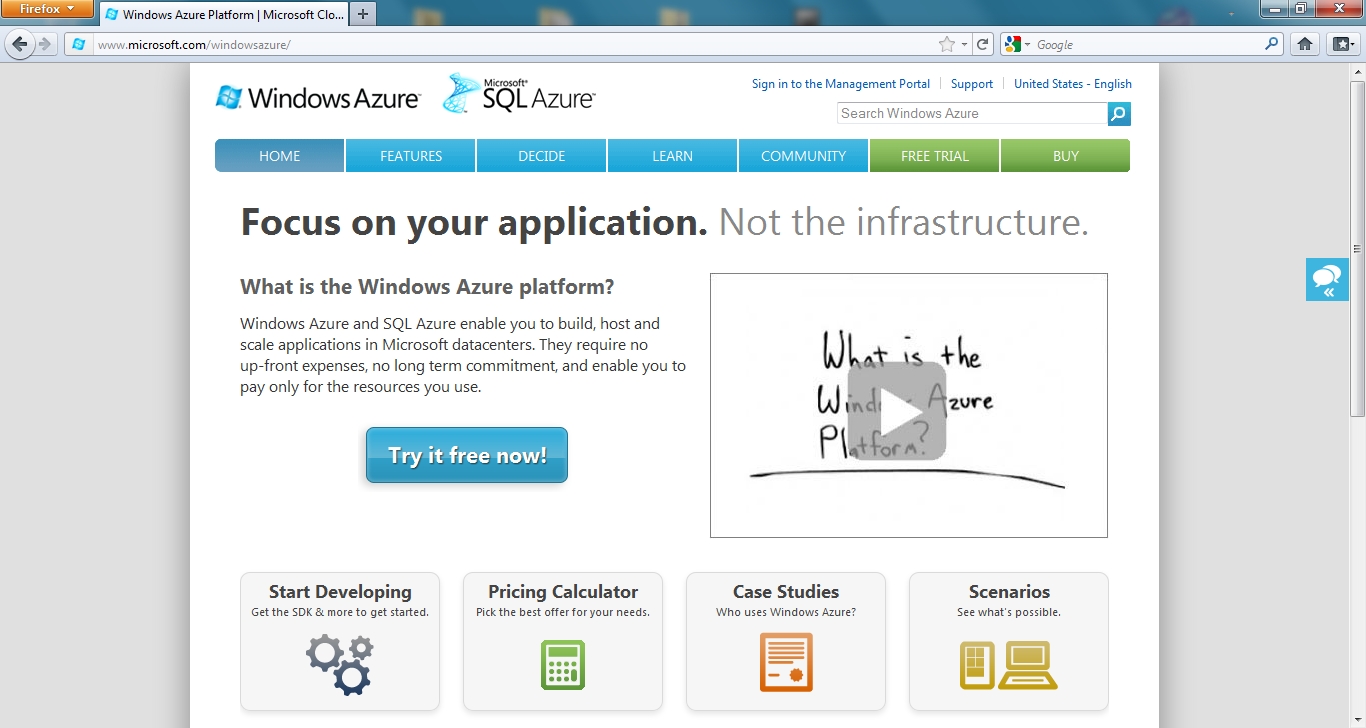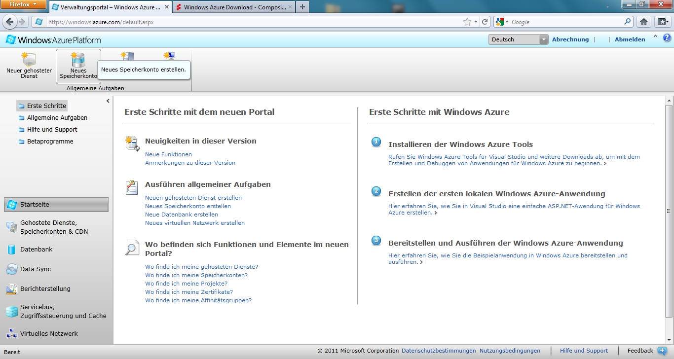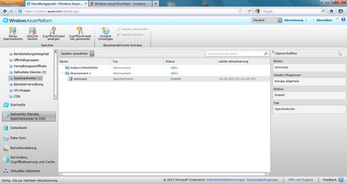 Zunächst brauchen wir einen Azure-Abonnement, das wir uns mit einer Windows Live-ID unter http://www.azure.com erstellen können.