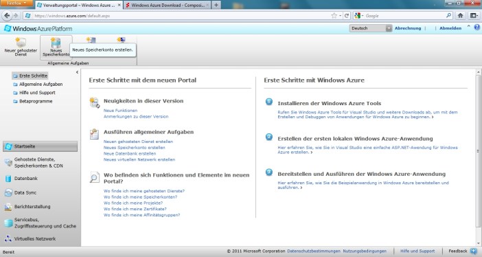 Sobald wir uns mit unserer Live-ID im Azure Management Portal angemeldet haben, können wir auch schon mit der Installation beginnen.