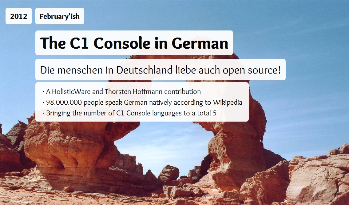 Auch die deutsche Lokalisierung des Systems, an der ich selbst zur Zeit arbeite, wurde bereits angekündigt. Tatsächlich verfügbar wird sie voraussichtlich im März 2012 als installierbares Paket innerhalb der C1 Console sein.