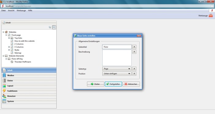 Für unsere Flickr-Galerie legen wir im Backend eine neue Seite an, auf der die Bilder später erscheinen sollen: