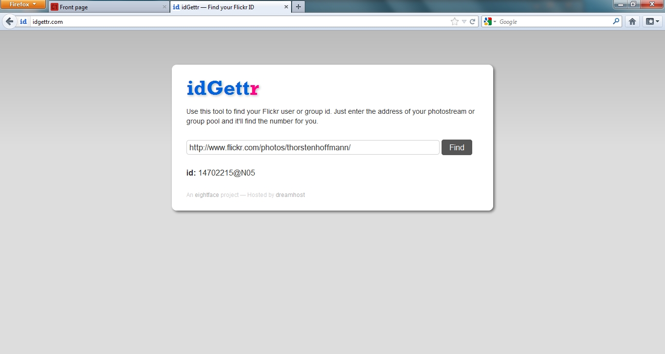 Ich empfehle zu diesem Zweck die Website http://idgettr.com, mit deren Hilfe wir aus der Adresse unseres öffentlichen Photostreams die User ID ermitteln können: