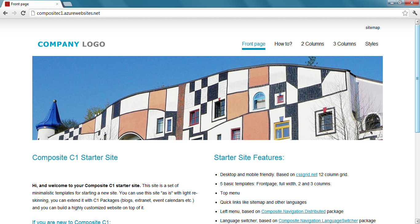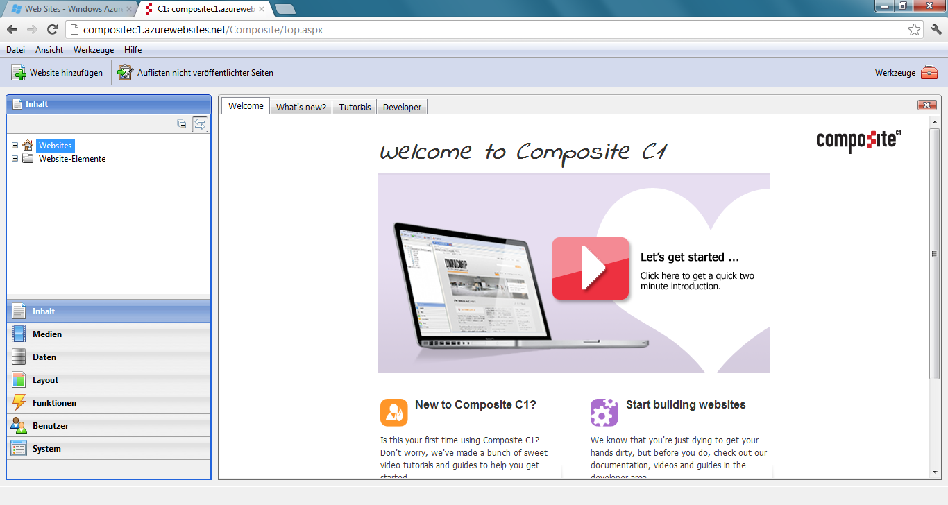 Die neue Website läuft jetzt auf Windows Azure unter der zuvor festgelegten URL http://compositec1.azurewebsites.net