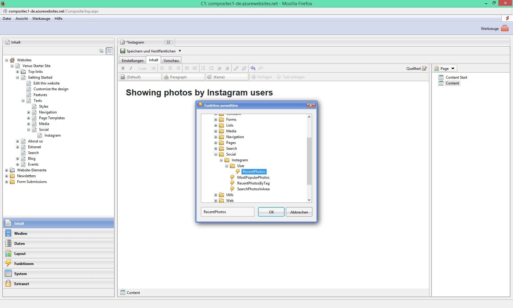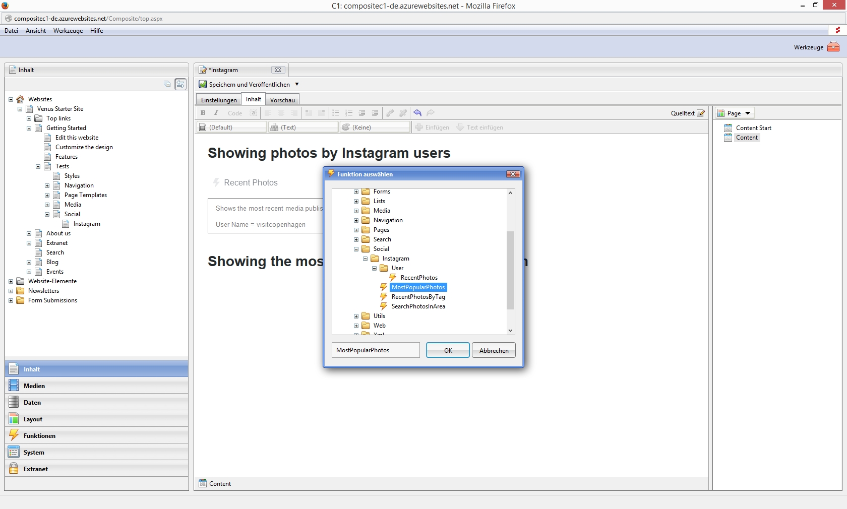 Neben Facebook und Flickr gibt es jetzt mit Instagram ein dritte Möglichkeit, Bilder aus Social-Media-Diensten in Composite C1 Websites zu integrieren.