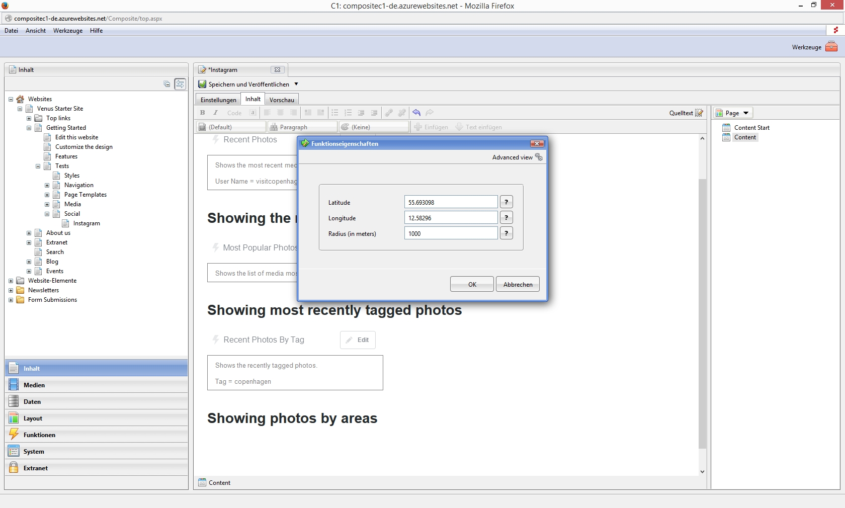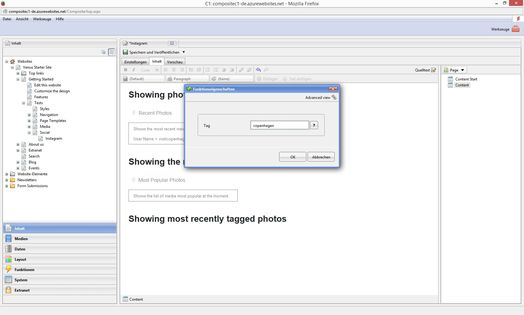 Die fertige Seite können Sie sich unter http://compositec1-de.azurewebsites.net/Getting-Started/Tests/Social/Instagram anschauen.