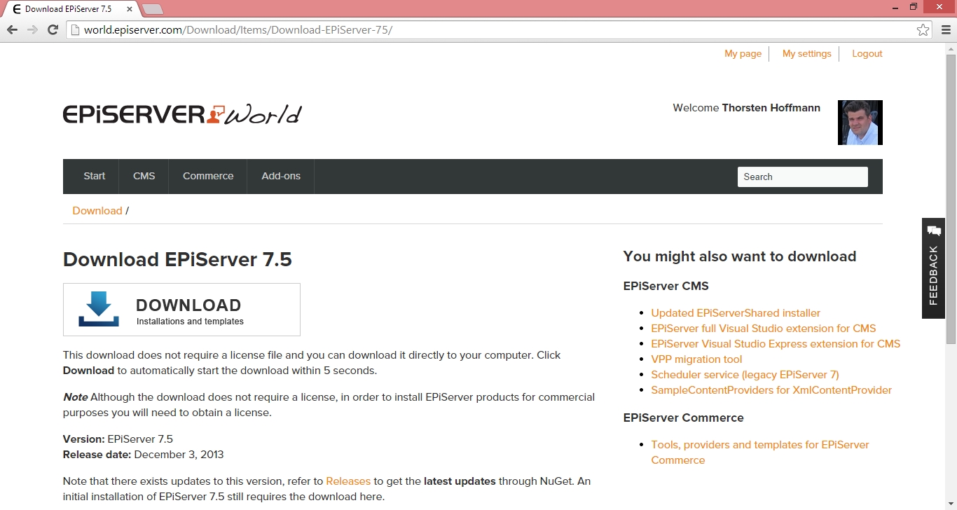 Nach der Installation der Entwicklungsumgebung müssen wir noch die Visual Studio Express Extension für EPiServer von folgender Website herunterladen und installieren: