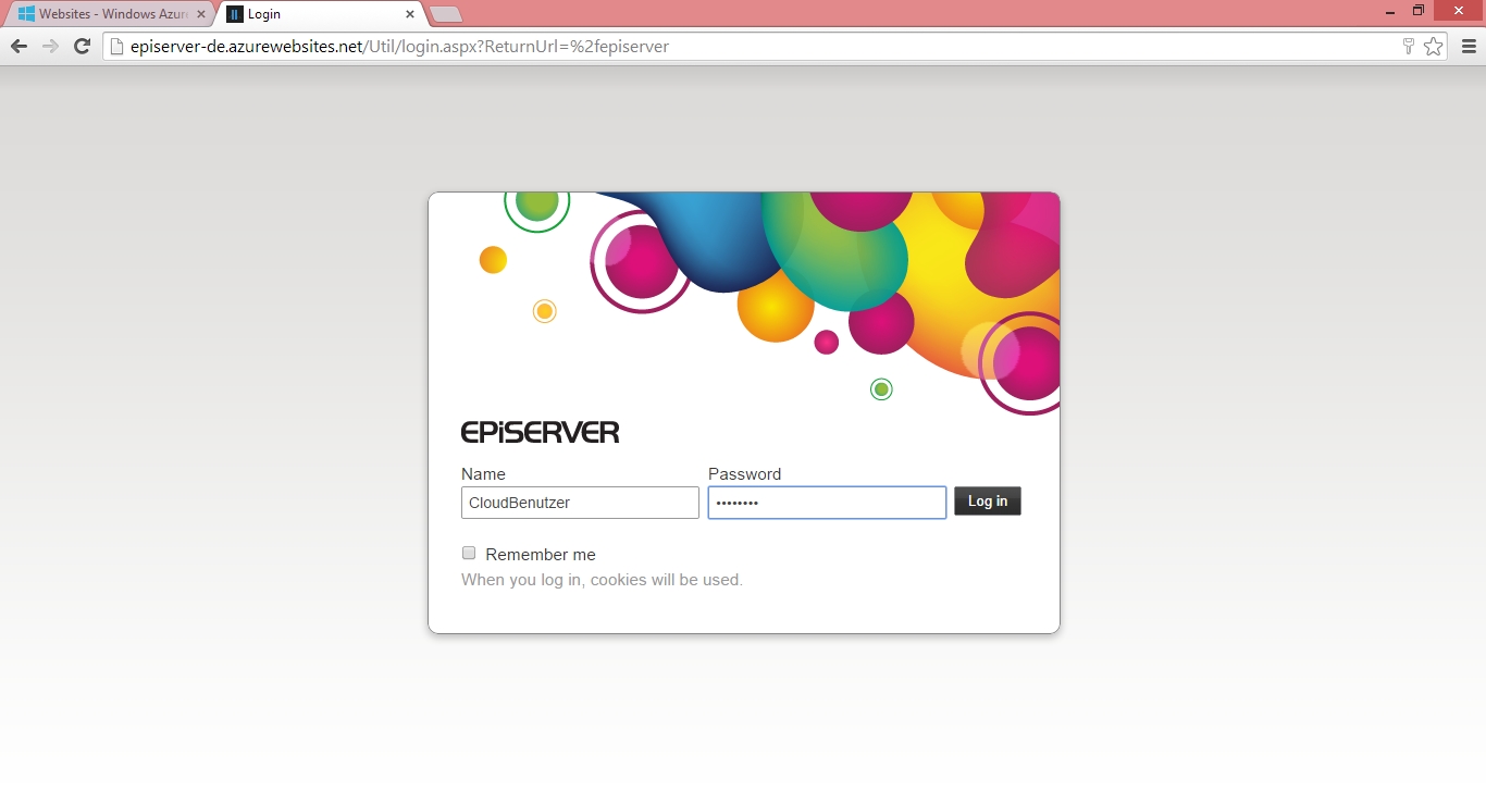 Mit diesem neu angelegten Benutzer sind wir nun in der Lage, uns im Backend unserer EPiServer Azure Website anmelden: