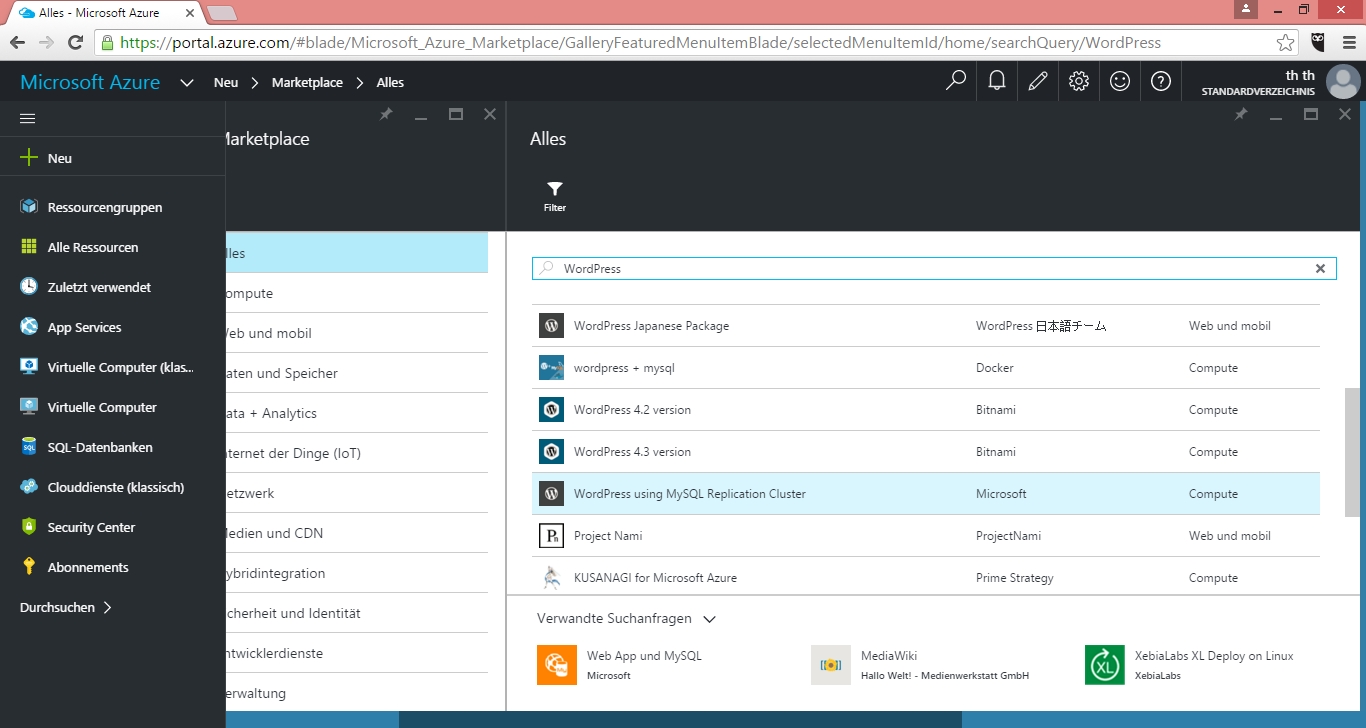 Als Alternative zur Kombination aus Azure App Service und ClearDB bietet Microsoft seit kurzem im Marketplace ein Azure Resource Manager (ARM) Template zur Automatisierung von WordPress Installationen an.