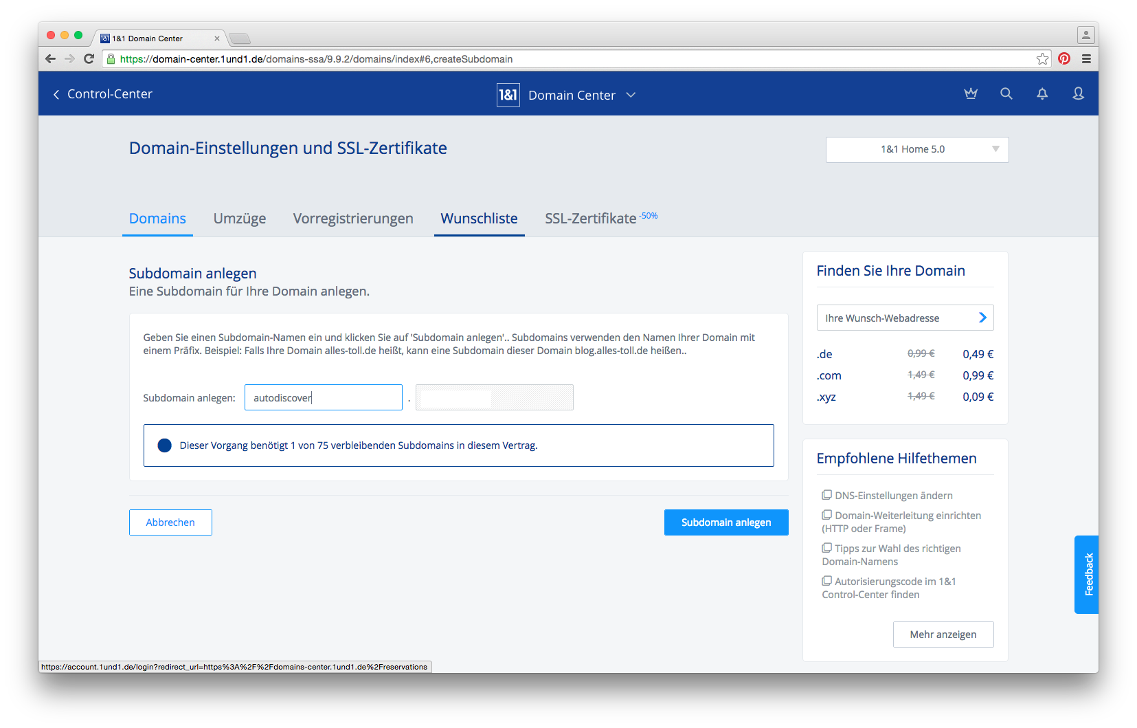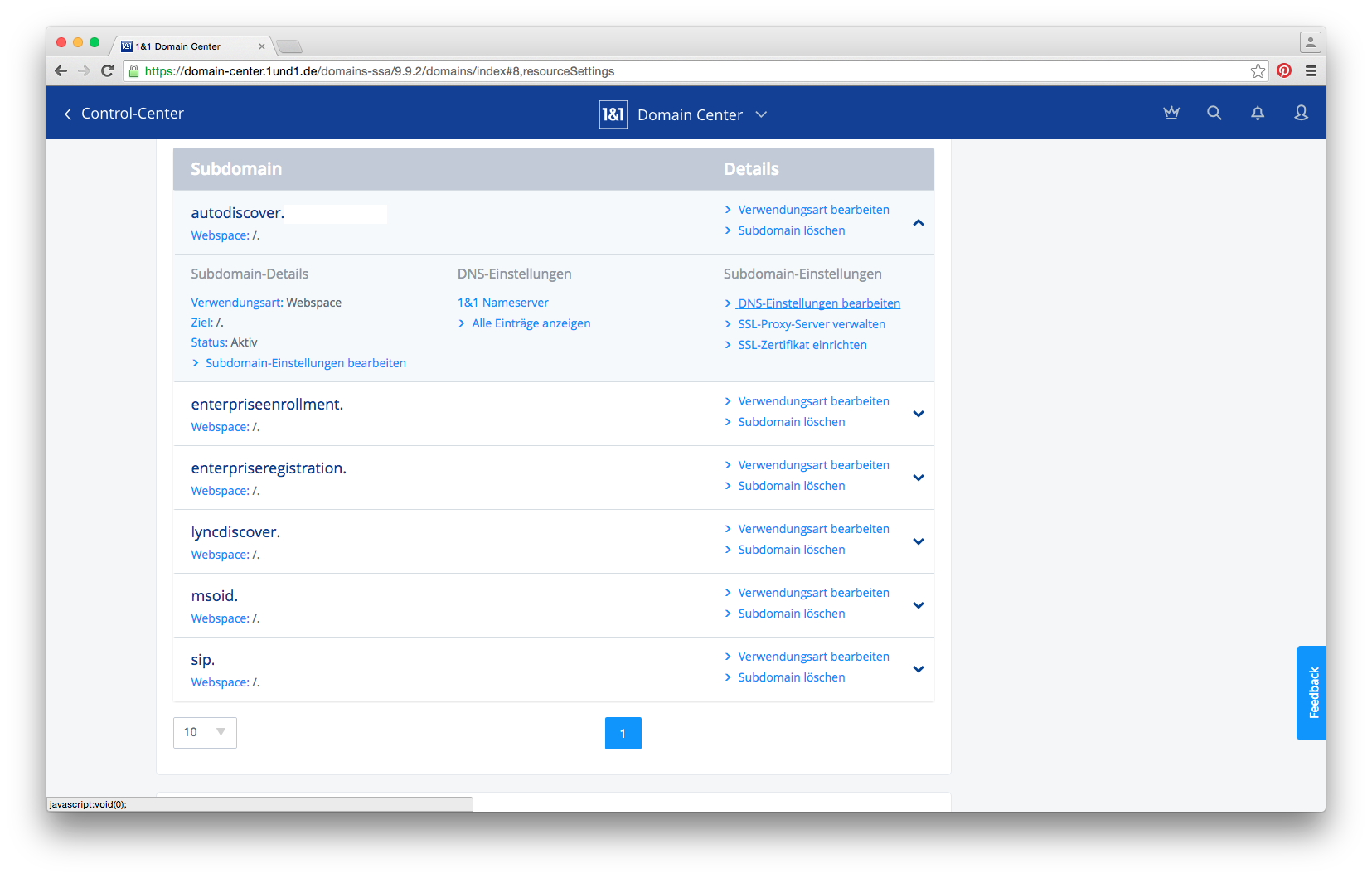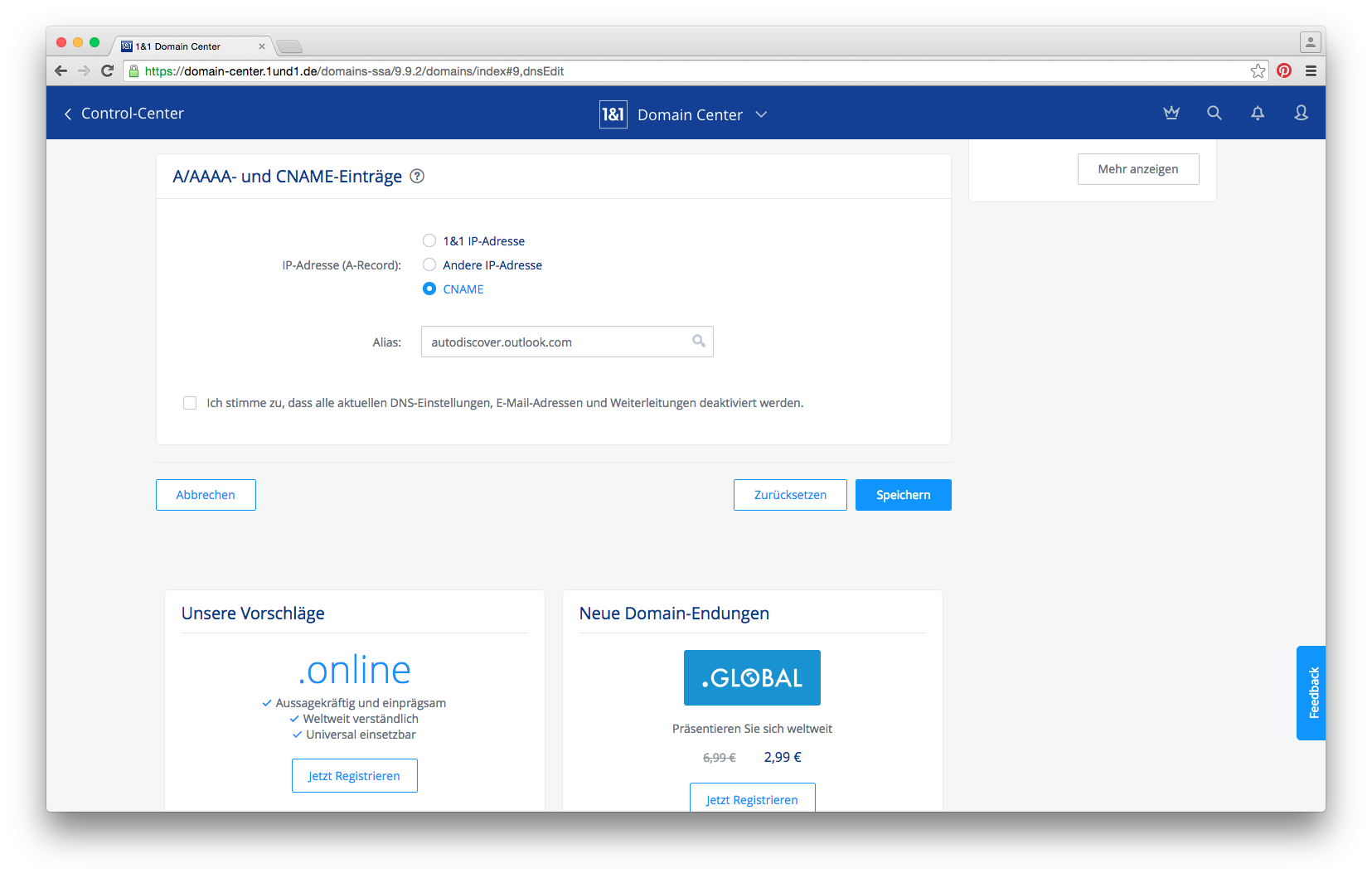 Während es bei den meisten anderen Domain-Anbietern komfortabel möglich ist, die DNS-Einträge für die Nutzung von Office 365 zu erstellen, gibt es beim Anbieter 1&1 Internet eine kleine Besonderheit: