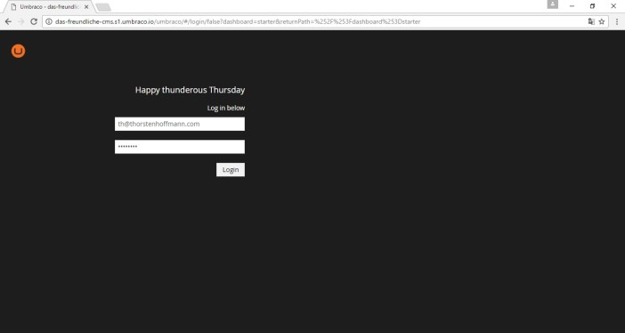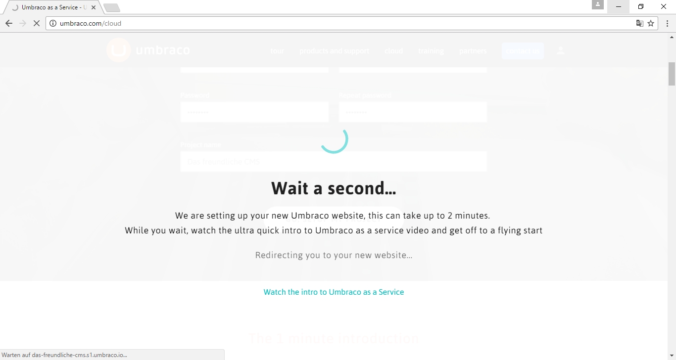 Die Daten, die wir dort angeben, sind für das spätere Login auf der Cloud-Verwaltungskonsole http://www.umbraco.io und der eigentlichen Website wichtig. Eine Verknüpfung mit der UmbracoID, die für www.umbraco.com und our.umbraco.org verwendet wird, ist hier nicht vorhanden.
