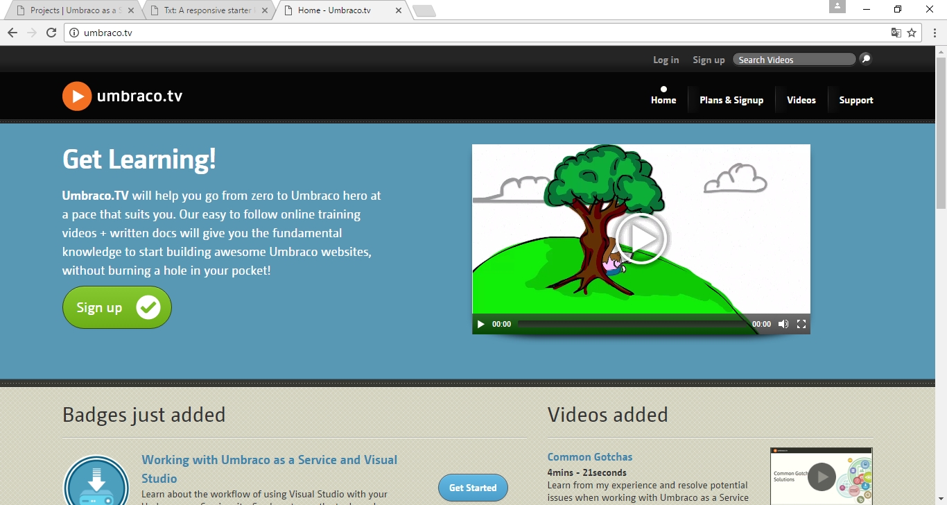 Wir können uns mit der UmbracoID, mit der wir den UaaS-Plan gekauft haben, also auch bei Umbraco.TV einloggen: