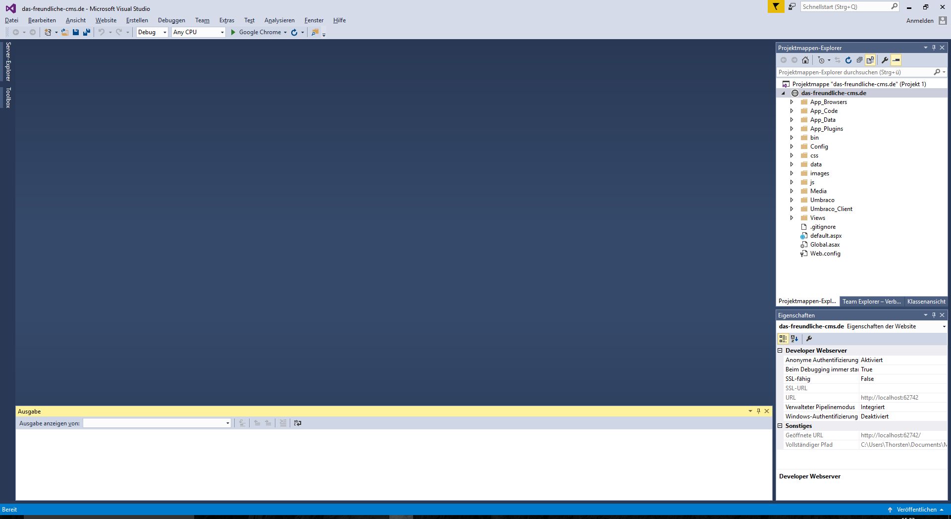 Jetzt können wir die Website lokal z.B. in Visual Studio öffnen und starten.