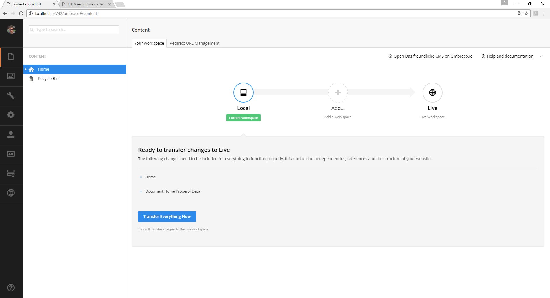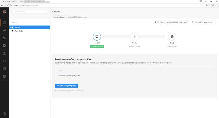 Insgesamt funktioniert das lokale Entwickeln mit Umbraco Cloud sehr einfach und reibungslos – lediglich der Unterschied zwischen Änderungen an Inhalten (Seiten und Medien) und Meta-Daten (Dokumenttypen, Templates, Dateien, etc.) ist im späteren Deployment zu beachten.