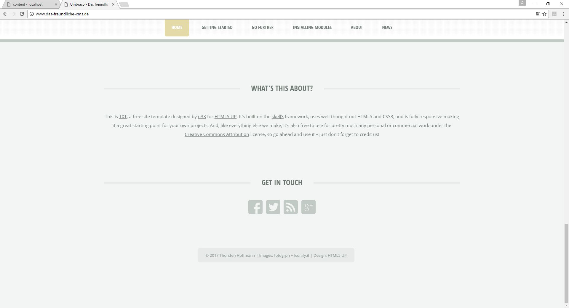 Damit ist dann auch der Footer auf unserer Live-Site geändert: